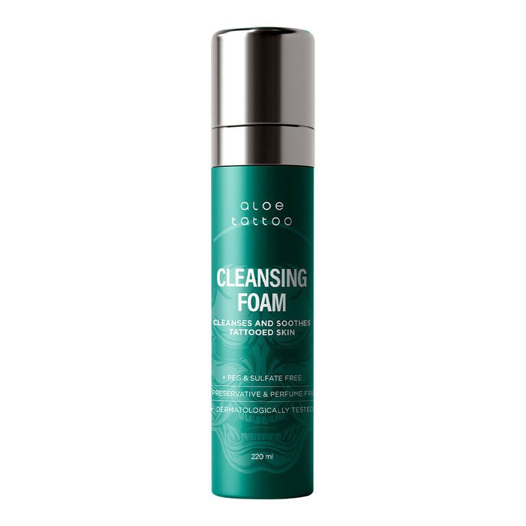 Het verwijdert effectief overtollig pigment en is gemakkelijk en handig in gebruik. De groene zeep foam bevat allantoïne en puur organisch extract van aloë bladeren. Het heeft hydraterende eigenschappen. Het gebruik van de zeep met aloë vermindert bloeden en roodheid tijdens het pigmenteren en tatoeëren.