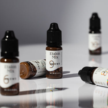 La ligne minérale pour les sourcils de Etalon Mix a été développé avec des pigments inorganiques (minéraux). Les pigments minéraux adaptés de Etalon Mix sont plus fins qu'auparavant, ce qui facilite leur déploiement dans la peau. Les pigments inorganiques pénètrent moins profondément dans la peau, ils se décomposent donc bien dans le temps et ne laissent aucune décoloration (1 à 1,5 ans). La combinaison d'hybride et d'inorganique est également possible, non pas en mélangeant dans une tasse, mais en plaçant d'abord une couche d'hybride puis une couche de minéral par-dessus. Créez vous-même le plus beau mélange de couleurs en mélangeant les pigments hybrides n°6, n°7, n°8, n°9 et n°10 ensemble afin de créer un mélange unique pour chaque client.