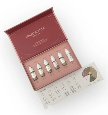 I pigmenti mimetici di Etalon Mix sono ibridi. I pigmenti ibridi sono un mix di pigmenti organici e inorganici riuniti per creare un equilibrio perfetto. Usa i pigmenti per trattamenti mimetici, correzione di cicatrici, lentiggini finte e... areola.