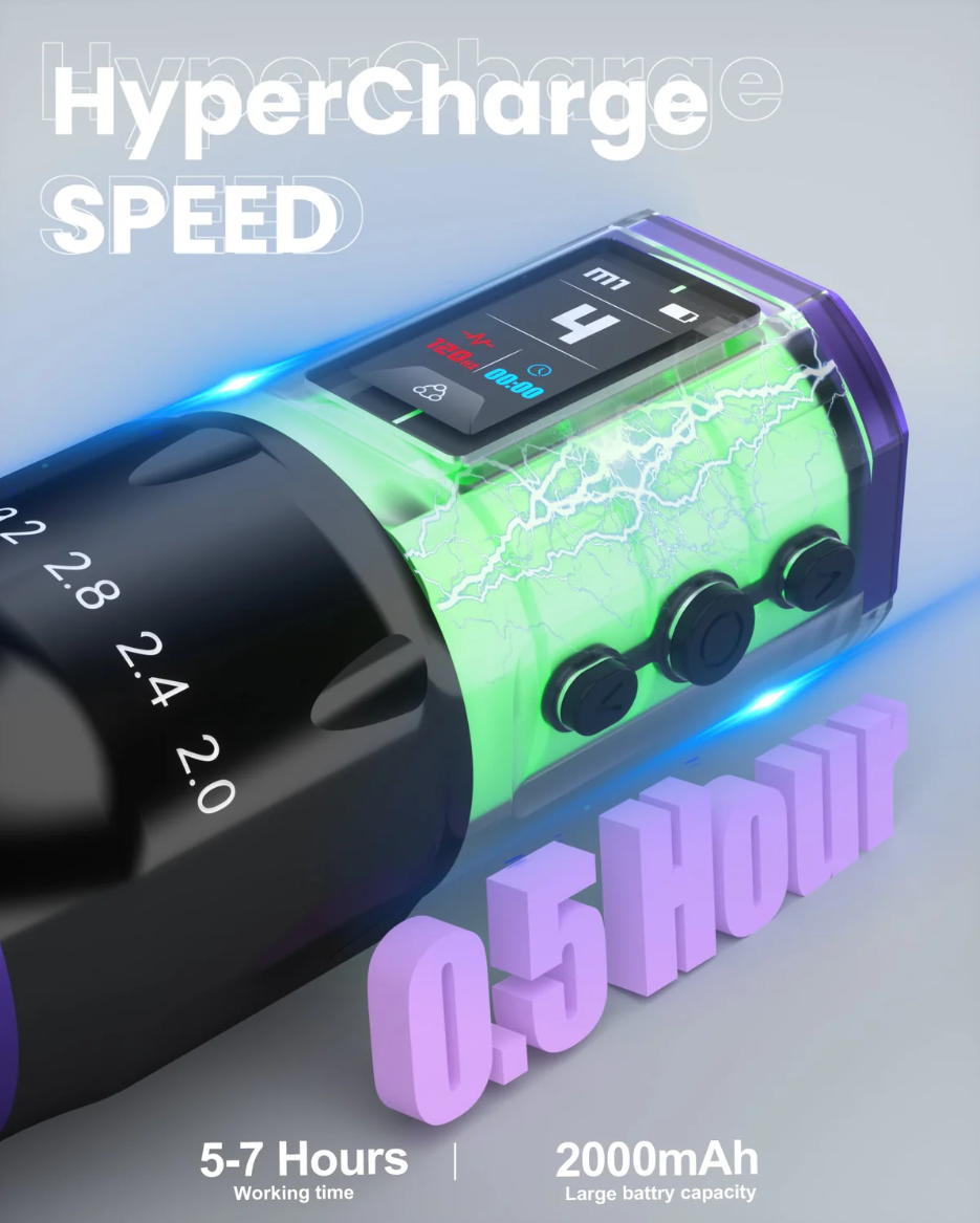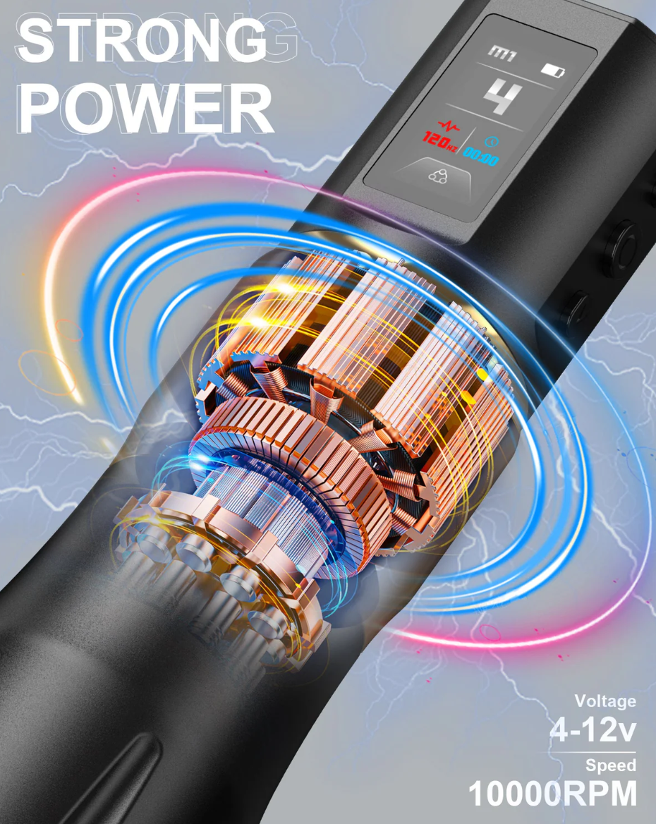 La Thunder Lord U9 è una macchinetta per tatuaggi versatile adatta a tutti i trattamenti PMU, tatuaggio, tatuaggio Fineline e SMP. Questa PMU e macchinetta per tatuaggi con lunghezza della corsa intercambiabile è wireless e ha un funzionalità di sovralimentazione. La macchina si ricarica nuovamente in 30 minuti.